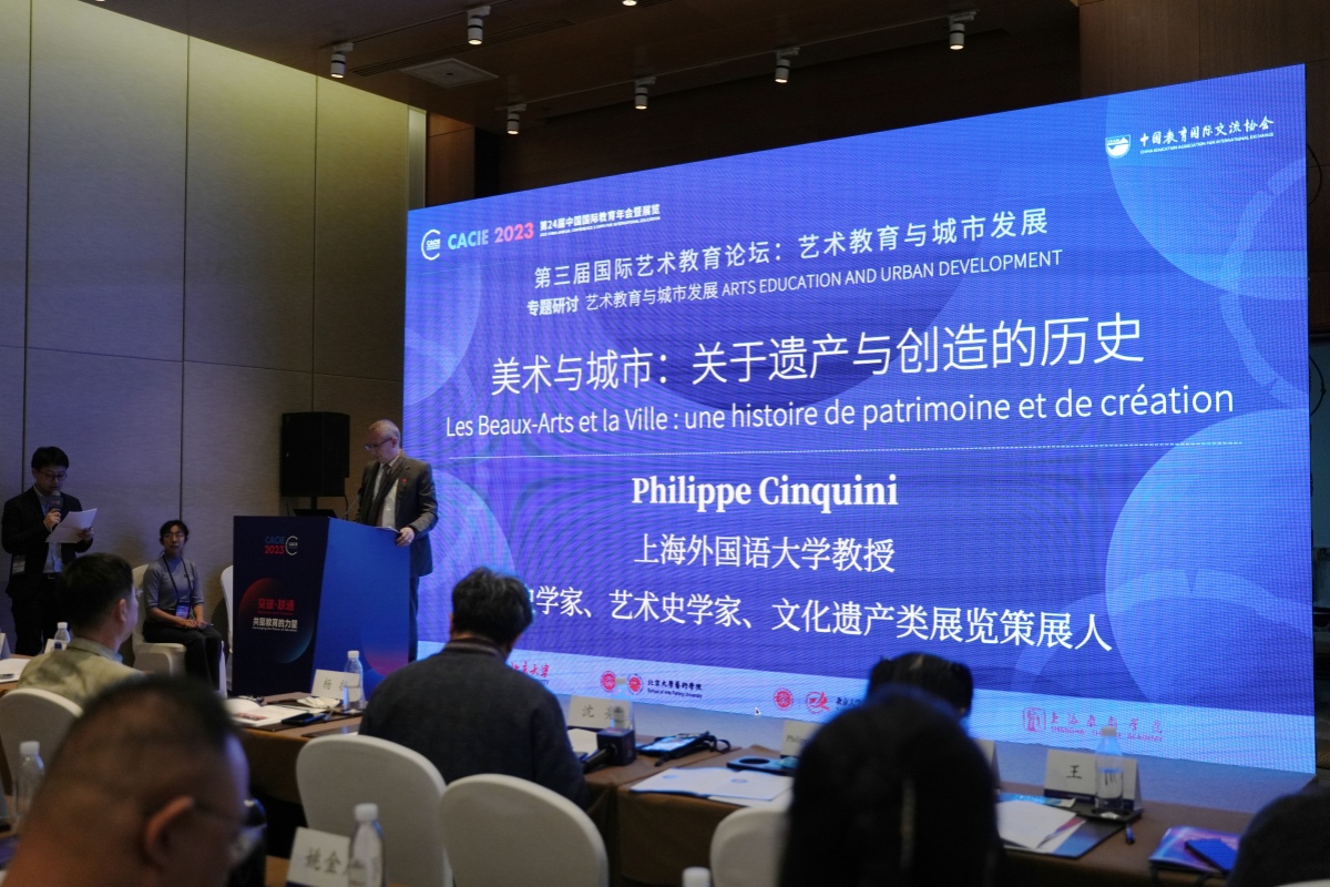 作为本届年会的重要组成部分,国际艺术教育论坛于10月28日在国家会议中心举办,受中国教育国际交流协会国际艺术教育专业委员会邀请,菲利普·杰奎琳先生(Philippe CINQUINI)担任发言嘉宾参加会议并围绕论坛主题:“艺术教育与城市发展”发表了题为《美术与城市:关于遗产与创造的历史》的主题发言。