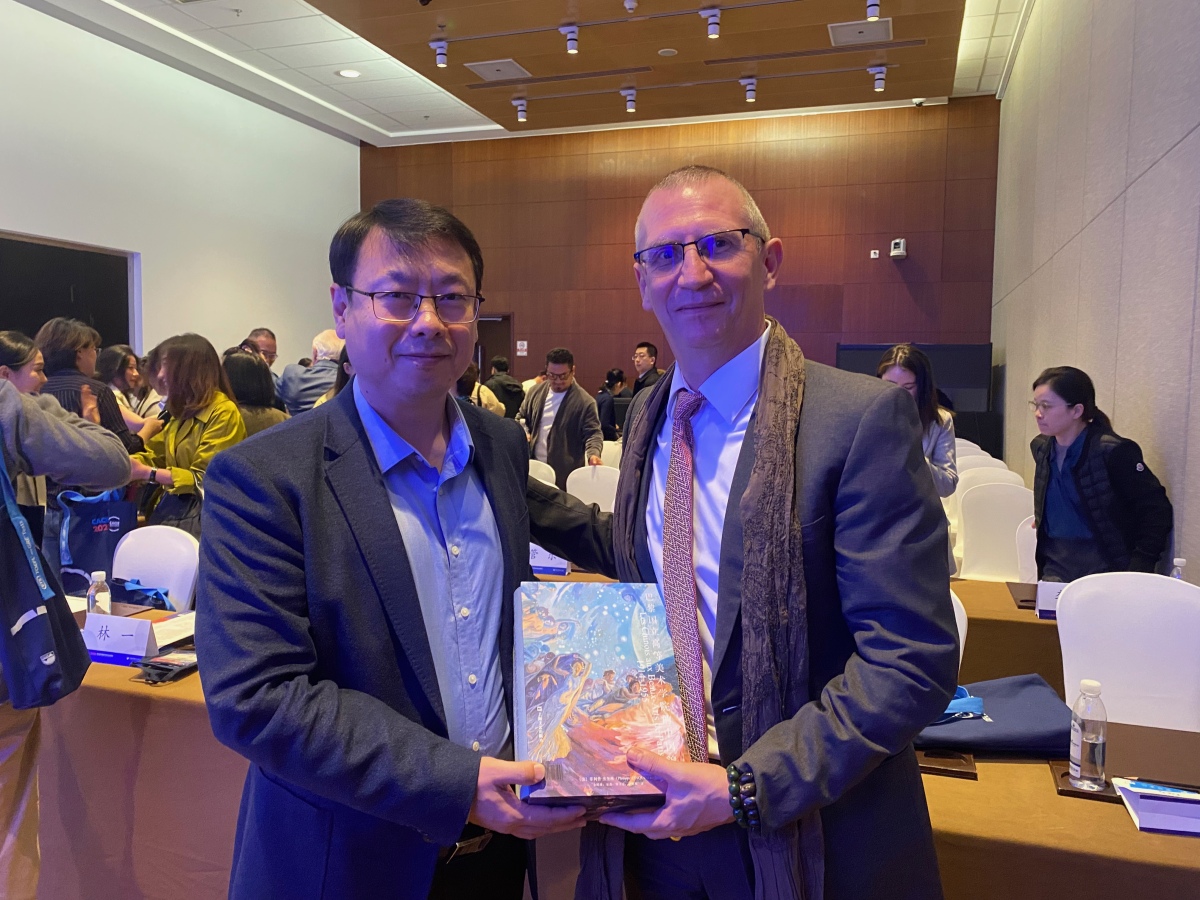 菲利普·杰奎琳教授向鲁迅美术学院杨波教授赠书并合影
