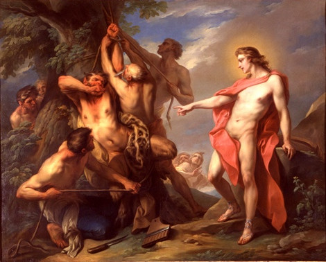 《阿波罗下令对马西亚斯剥皮》,卡勒·凡·路(Carle Van Loo, 1705-1765),布面油画,1735年 ,130 x 163 cm,巴黎国立高等美术学院藏
