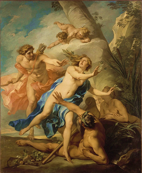 《阿波罗和达芙妮》,路易-米歇尔·凡·路(Louis-Michel Van Loo, 1707-1771),布面油画,1733年,220 x 181 cm,巴黎国立高等美术学院藏