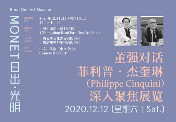 12月12日周六下午,借“日出·光明—莫奈·日出印象”特展之际,中法文化比较专家、翻译家董强先生和法国里尔大学历史与艺术史博士、文化遗产类展览策展人菲利普·杰奎琳先生(Philippe Cinquini)受邀来到位于上海中山东一路1号的东一美术馆进行了一场精彩的讲座,讲座现场座无虚席。