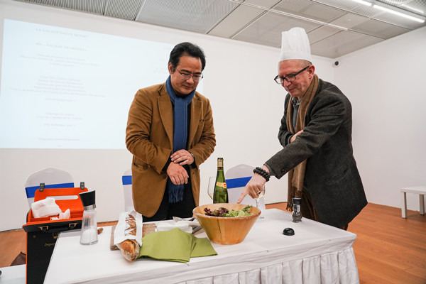 讲座的最后,两位主讲人依照莫奈独创的沙拉食谱,为大家现场演示制作了一份“莫奈沙拉”,并邀请听众一起品尝,感受莫奈每天的简单生活。