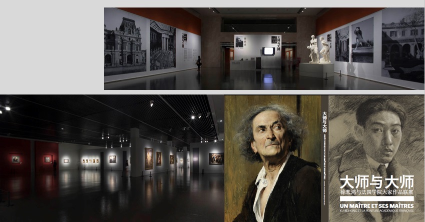 图为2014年举办于中华艺术宫的《大师与大师》展览现场和图录封面