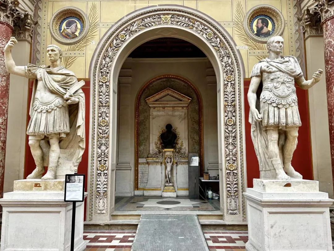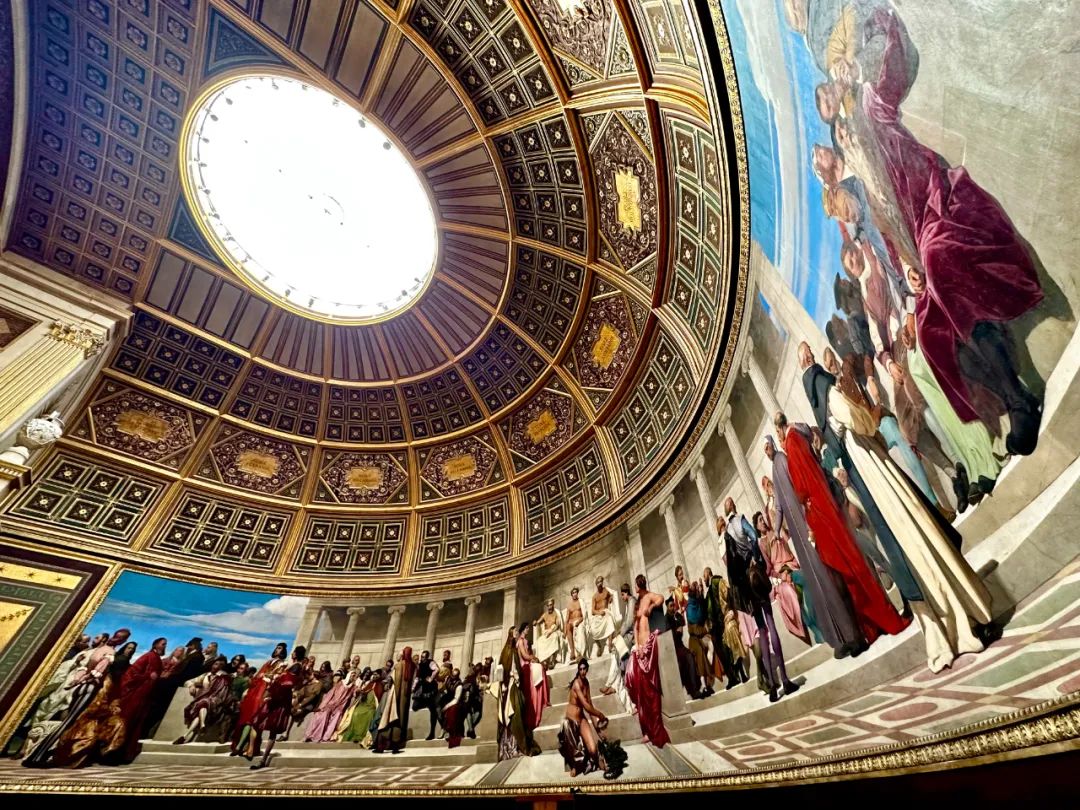 荣誉厅的半圆形墙壁上镶嵌着德拉罗什的巨大壁画《艺术女神为获奖者颁发橄榄冠》