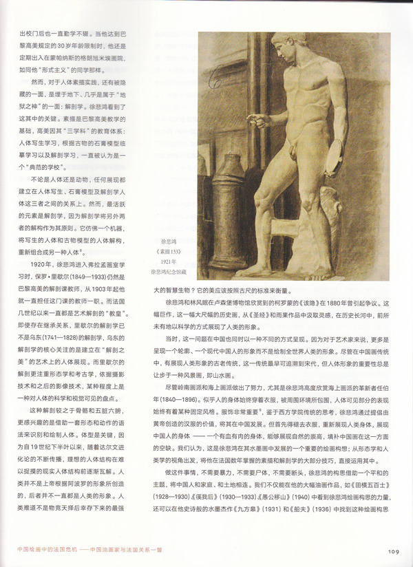 随着徐悲鸿,让我们来探讨中国油画及其与法国关系的问题。在“巴黎画派”有许多放荡不羁的艺术家,他们最终都支持军国主义,我们若突出徐悲鸿与他们之间的矛盾,会有偏见。现代派艺术家纷纷来到巴黎,把巴黎画派,把整个世界城市巴黎,看成是现代艺术的荟萃之地,我们可是要对这美好形象有所冒犯。在艺术批评家与艺术史学家眼里,在巴黎若不是从这个熔炉里出来的,在20世纪就不会有成就。然而,如果说徐悲鸿不属于巴黎画派,也从来都不是世界主义者,他却是个热爱巴黎和它的艺术的人,从来不与魔鬼打交道。