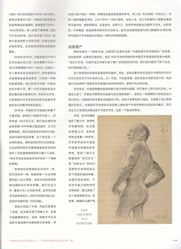 此外,我们希望对迈克尔·苏立文(1916-2013)一篇贬低徐悲鸿以及徐悲鸿学派的文章进行反驳。那篇文章企图否定其现代性,而归入中国画历史中一个不幸的插曲。像苏立文这样的学者(scholars),按照这条思路,把林风眠(1900-1991)、庞薰琹(1906-1985)、刘海粟(1896-1994)和其他艺术家,如最近发现的常玉(1901-1966),都看作是现代中国艺术的主角,他们有一时都受惠于巴黎画派,在形式上过渡进入全球化艺术时代。