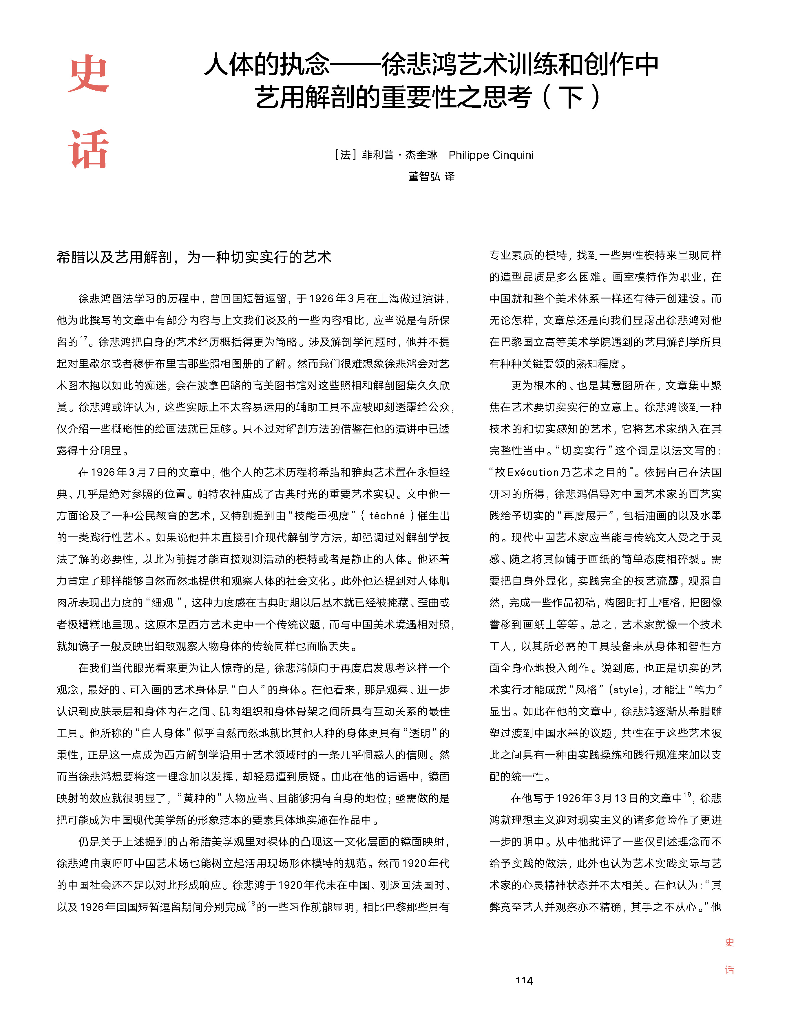 菲利普·杰奎琳(Philippe Cinquini),《人体的执念——徐悲鸿艺术训练和创作中艺用解剖的重要性之思考(下)》,载于《油画艺术》,2017年第4期,第114-118页。