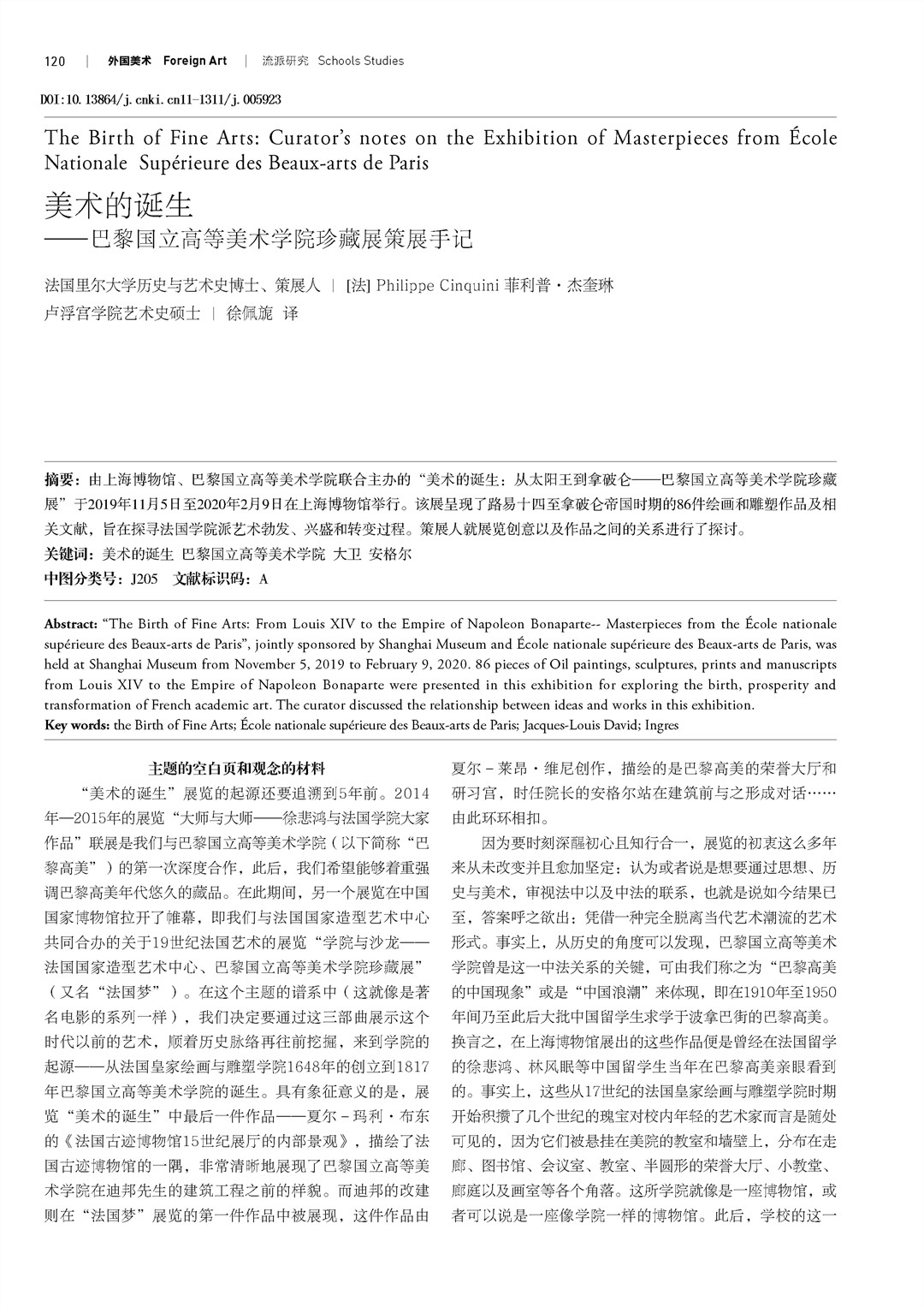 菲利普·杰奎琳(Philippe Cinquini),《美术的诞生——巴黎国立高等美术学院珍藏展策展手记》,载于《美术》,2020年第4期,第120-126页。