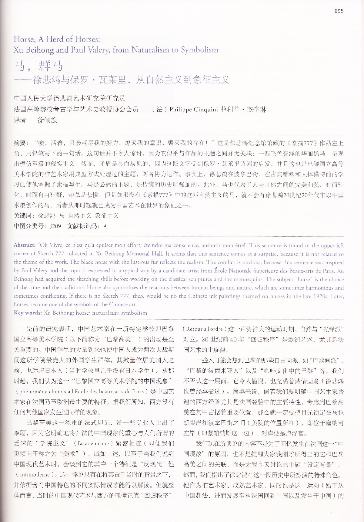 菲利普·杰奎琳(Philippe Cinquini),《马,群马——徐悲鸿与保罗·瓦莱里,从自然主义到象征主义》,载于《美术》,2020年第9期,第95-98页。