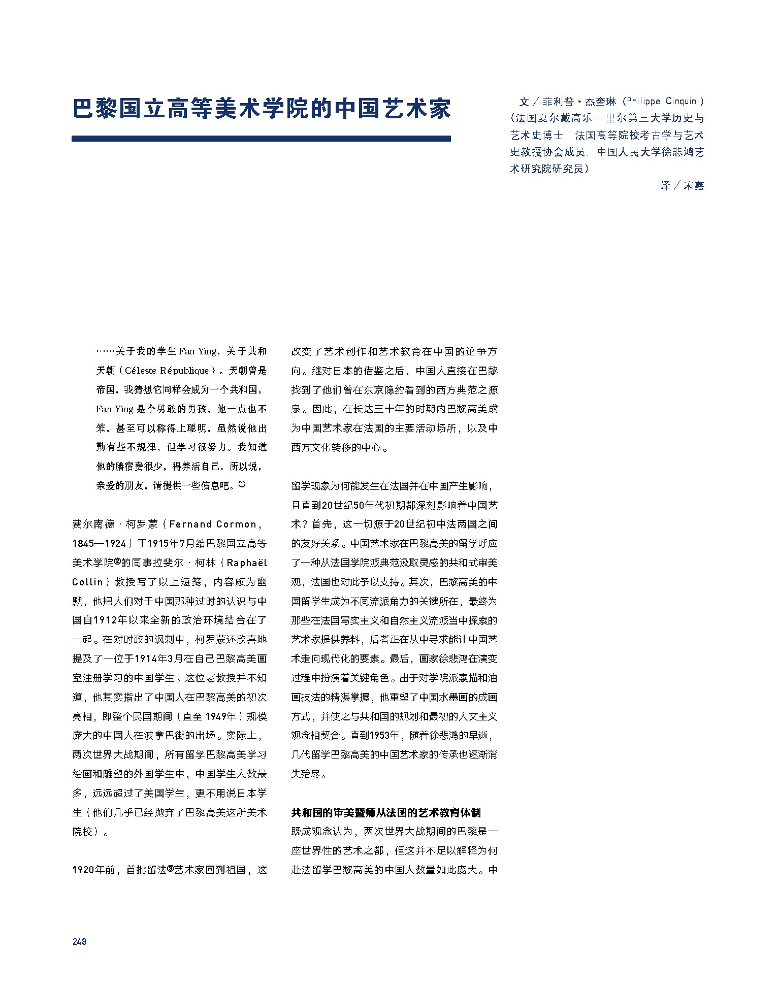 菲利普·杰奎琳(Philippe Cinquini),《巴黎国立高等美术学院的中国艺术家》,载于《先驱之路:留法艺术家与中国现代美术 : 1911-1949》,2021年,第248-257页。
