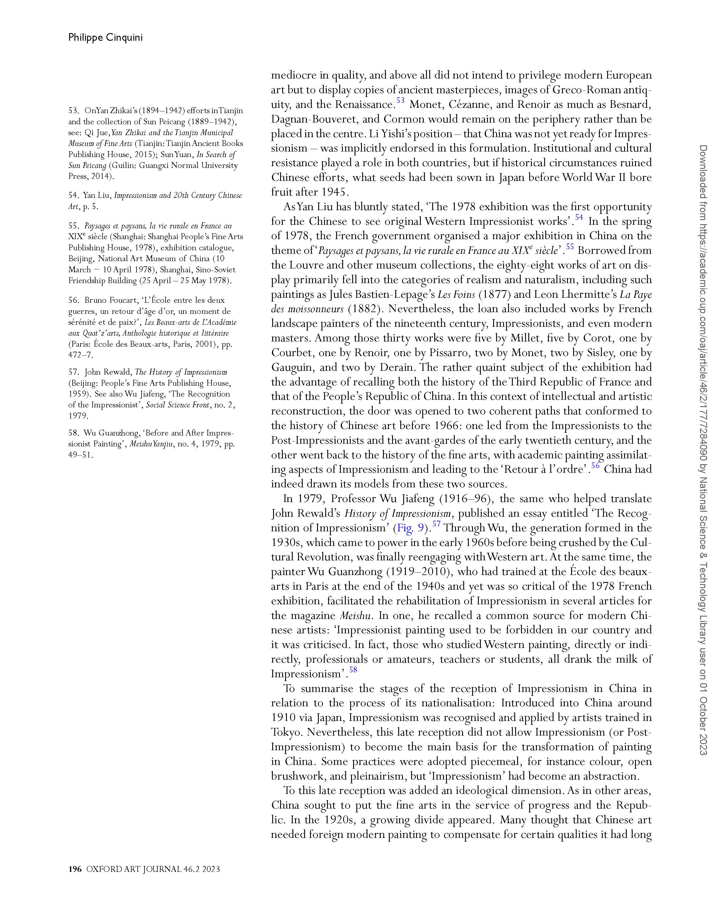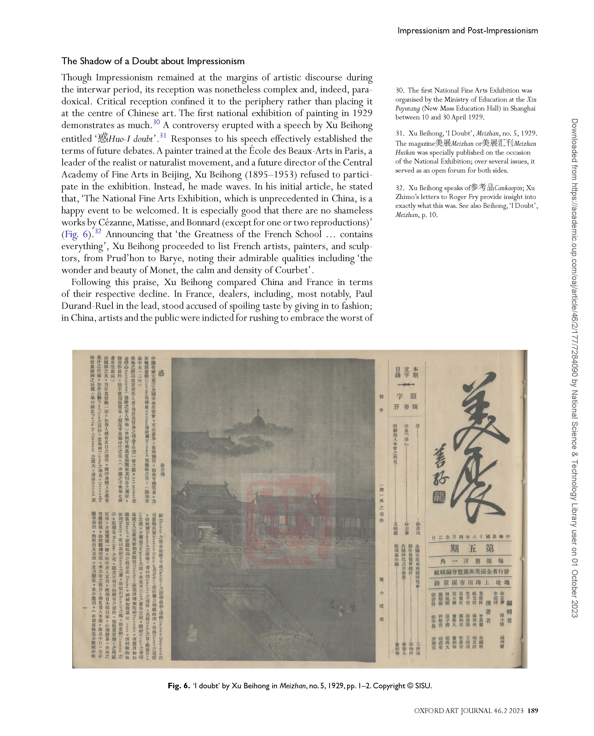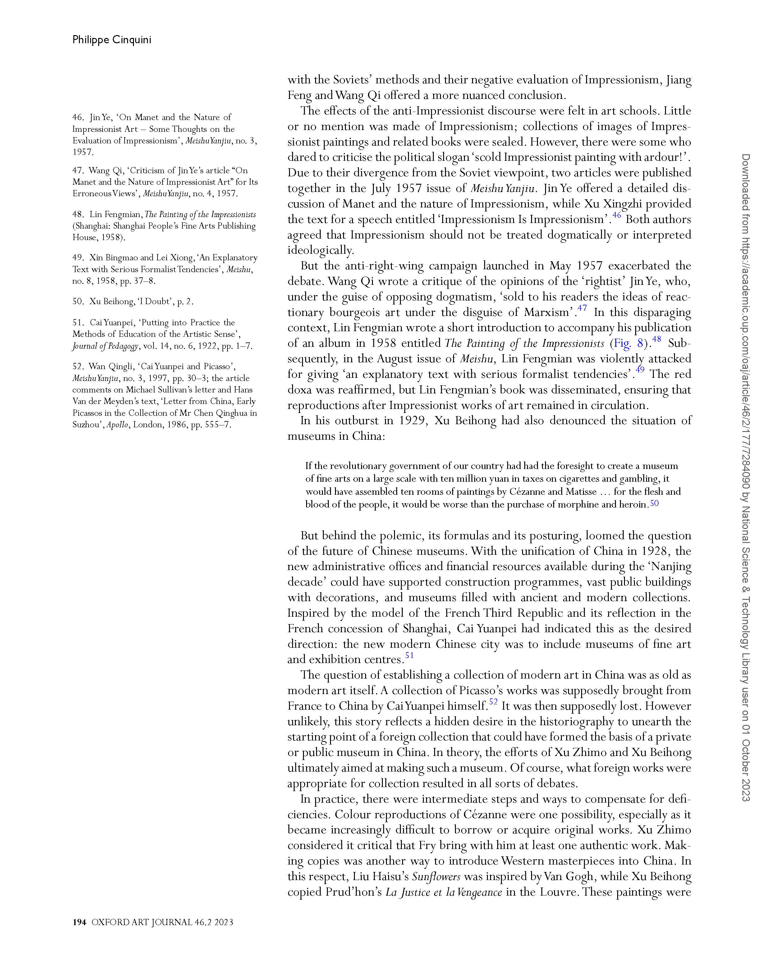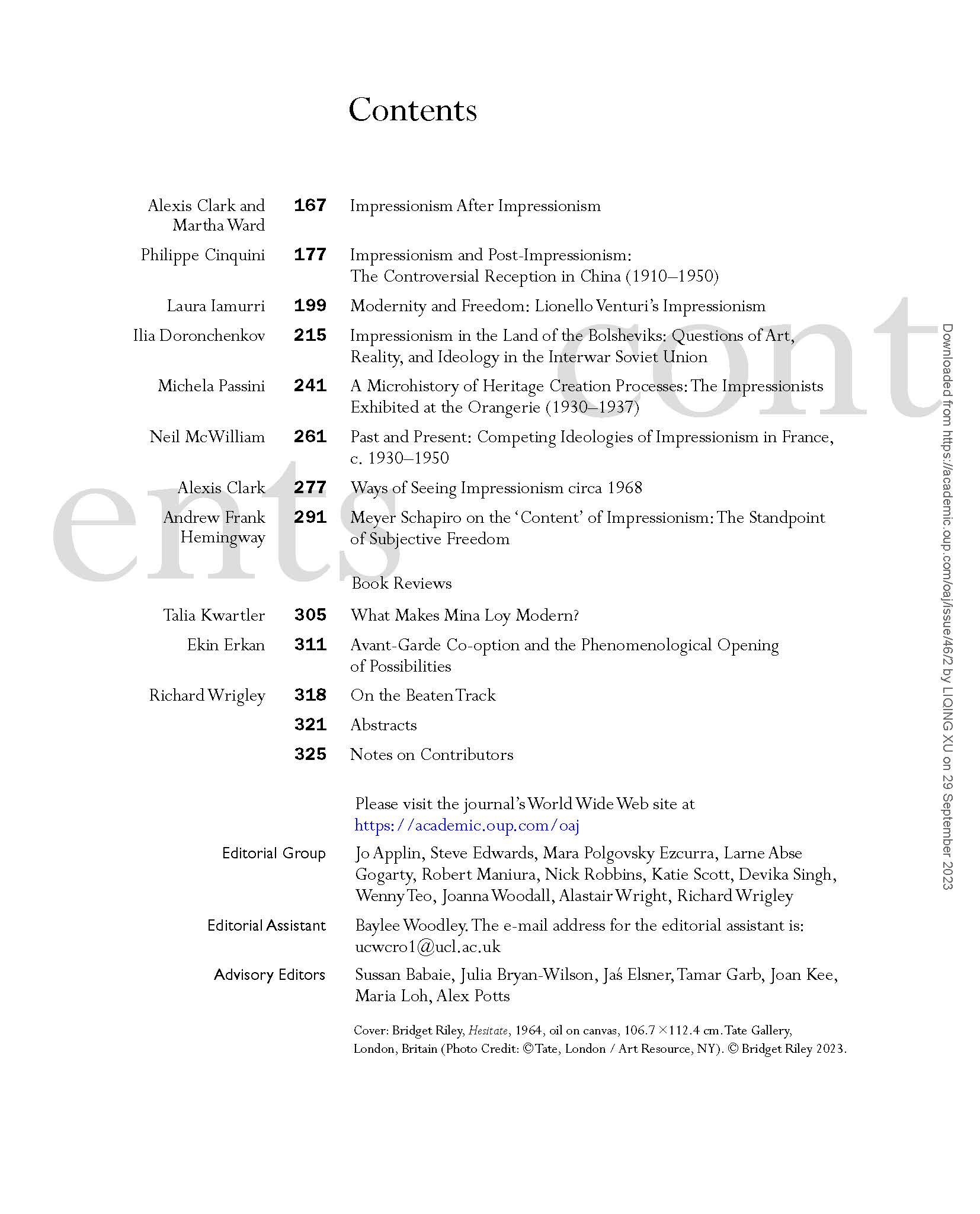 菲利普·杰奎琳(Philippe Cinquini),《印象派与后印象派在中国:争议和接纳(1910-1950 年)》,载于《牛津艺术杂志》(Oxford Art Journal),第46卷第2期,2023年8月,第177-197页。
