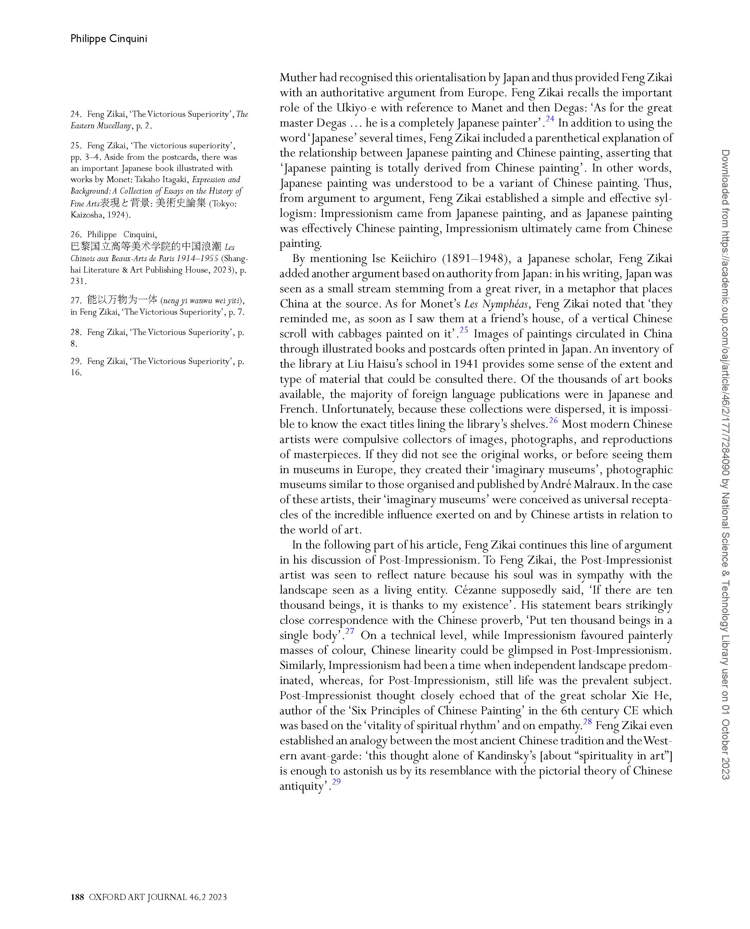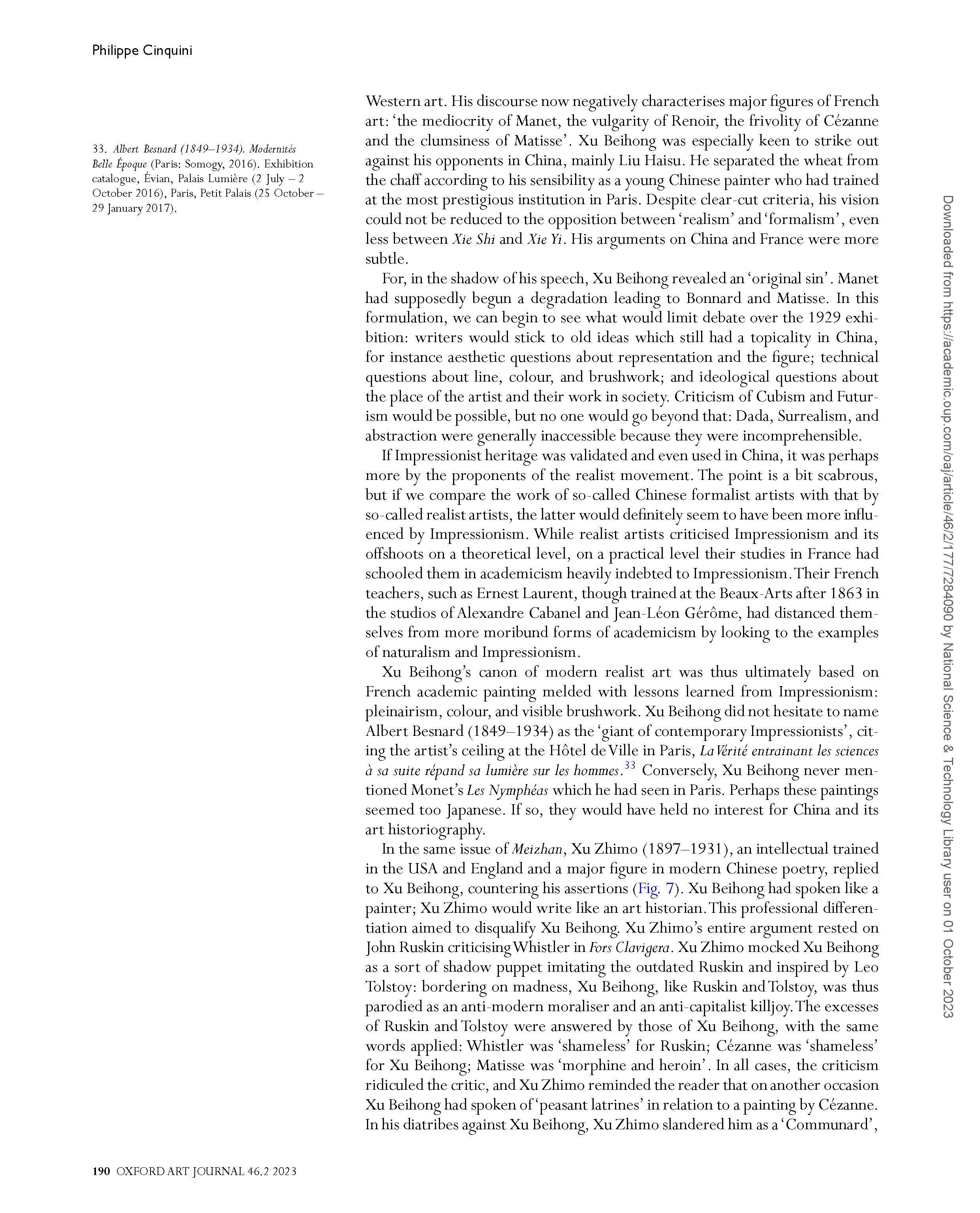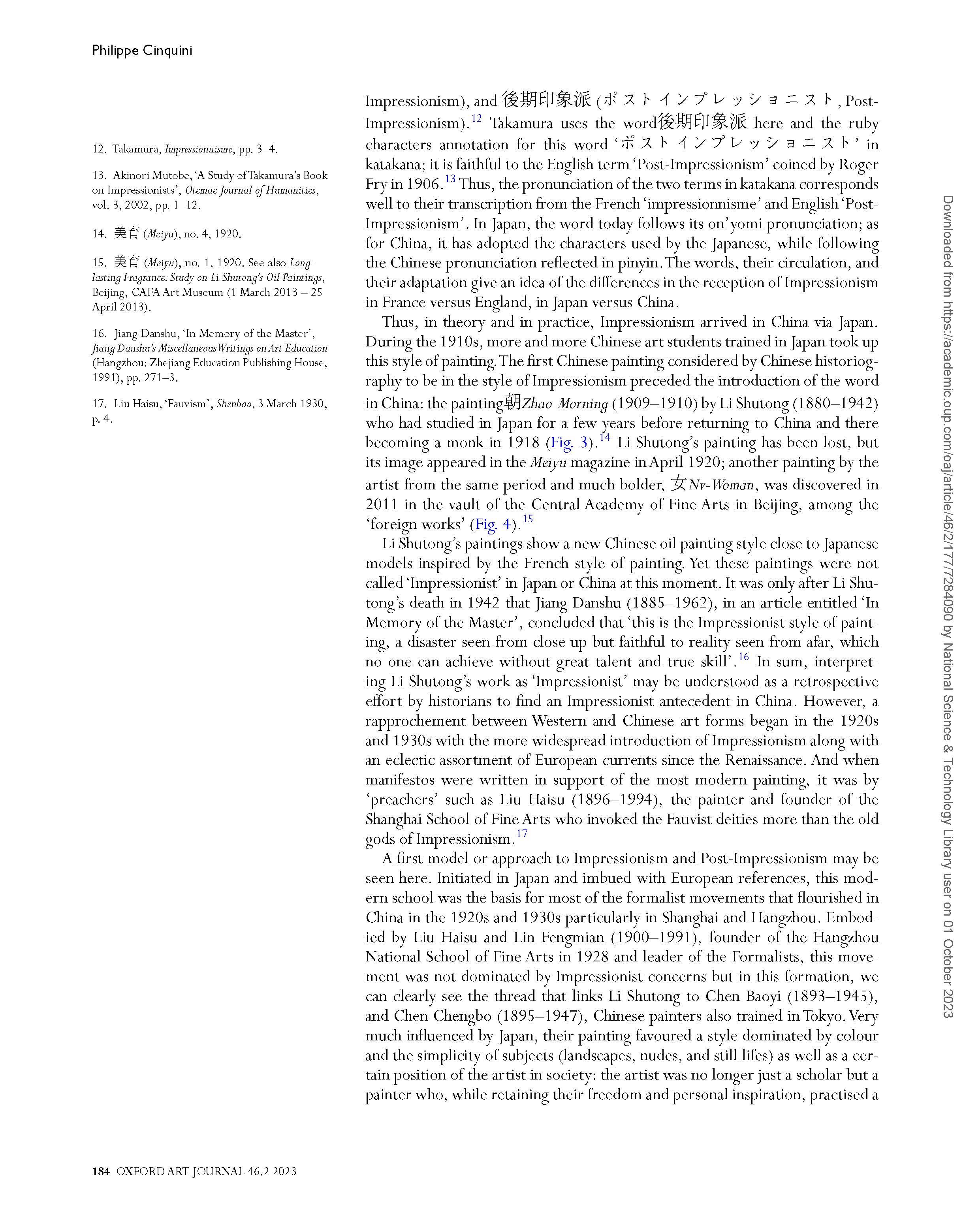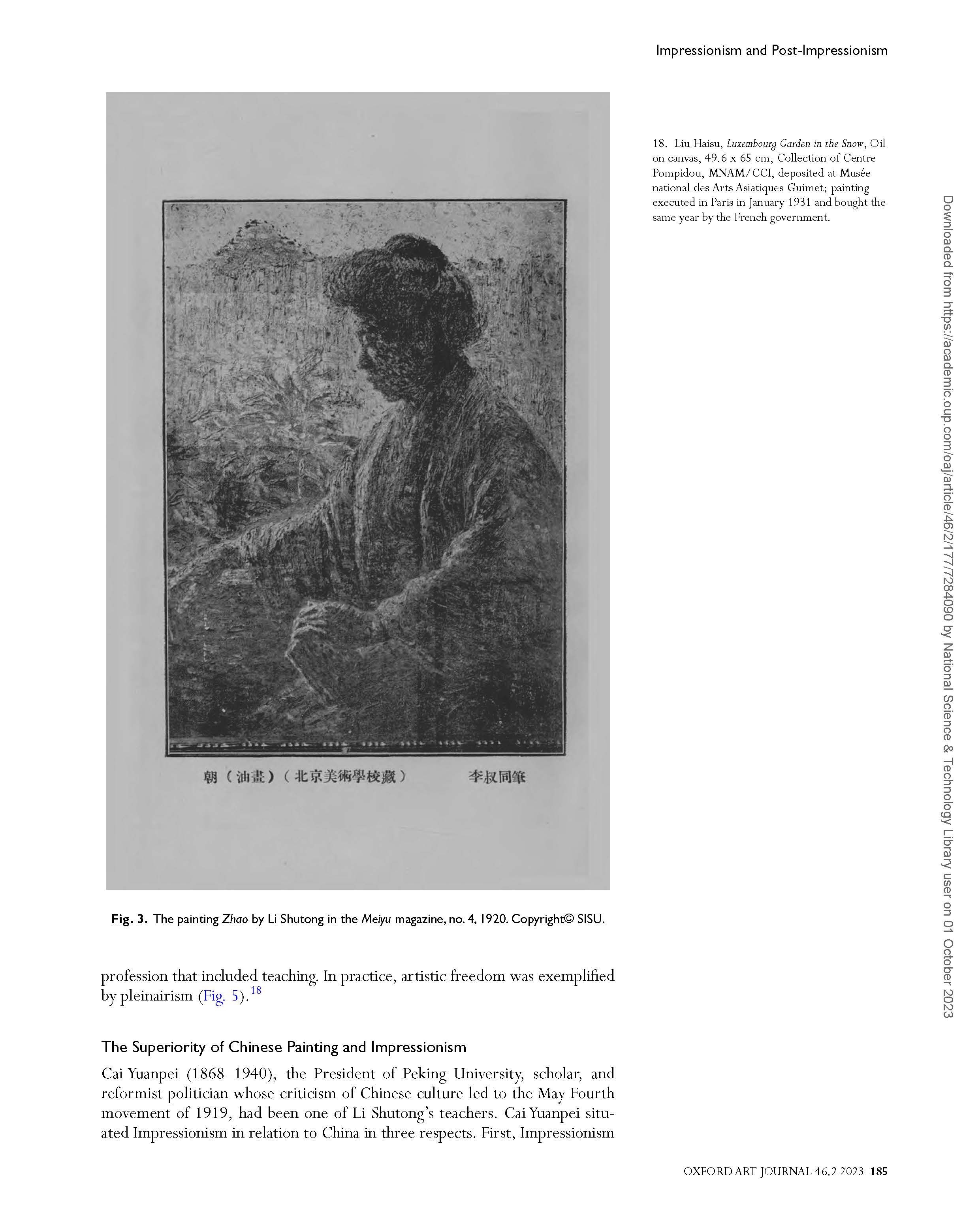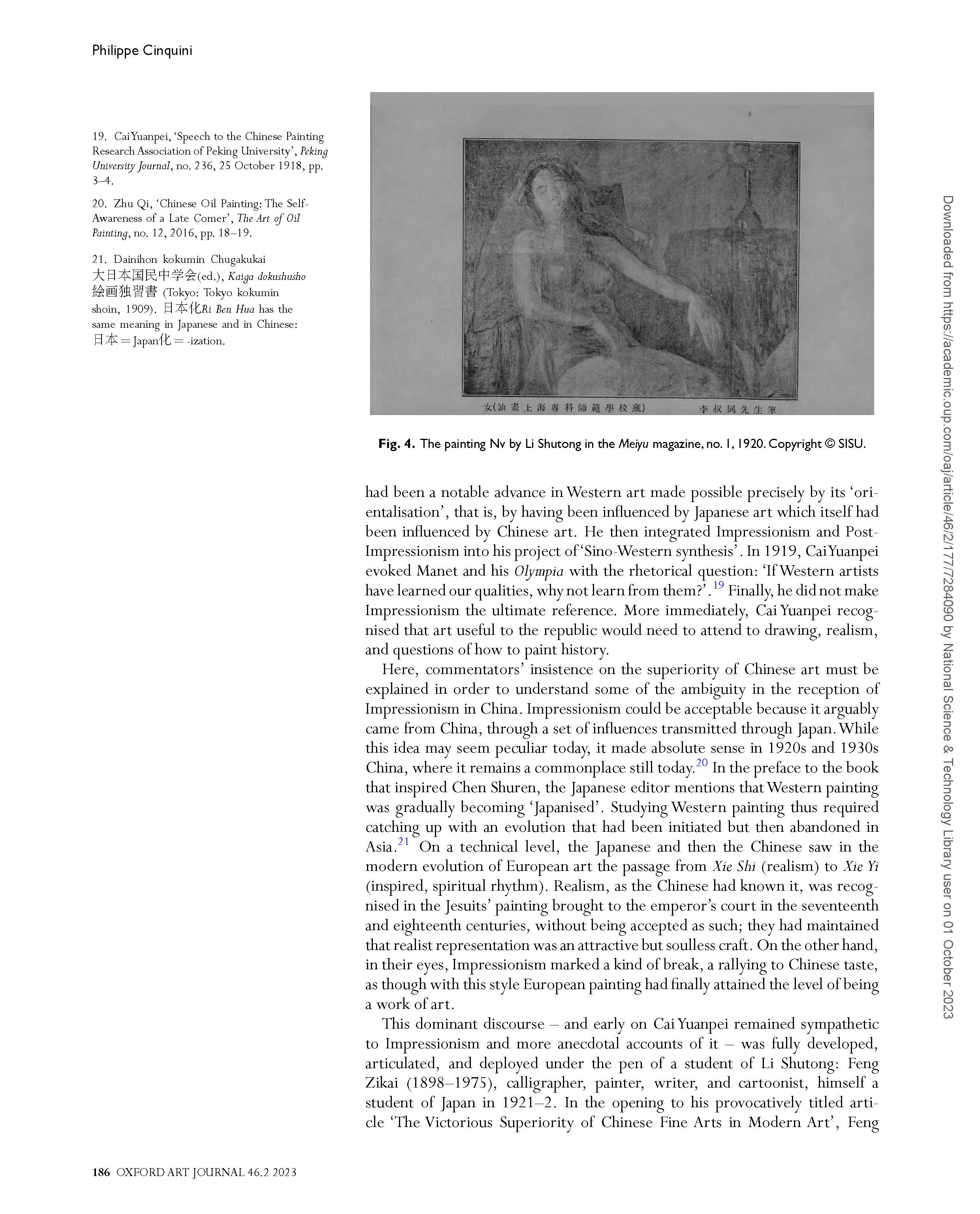 菲利普·杰奎琳(Philippe Cinquini),《印象派与后印象派在中国:争议和接纳(1910-1950 年)》,载于《牛津艺术杂志》(Oxford Art Journal),第46卷第2期,2023年8月,第177-197页。