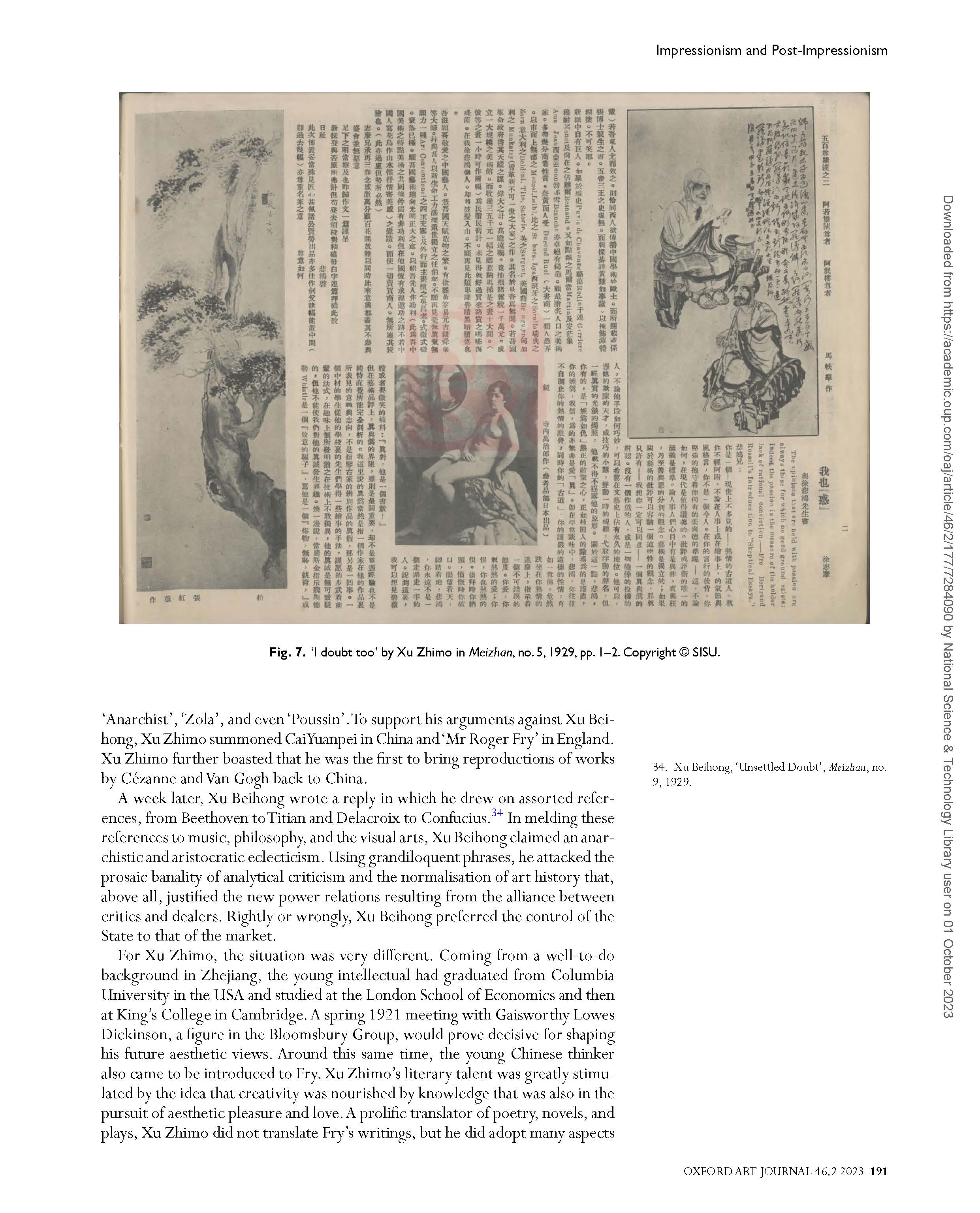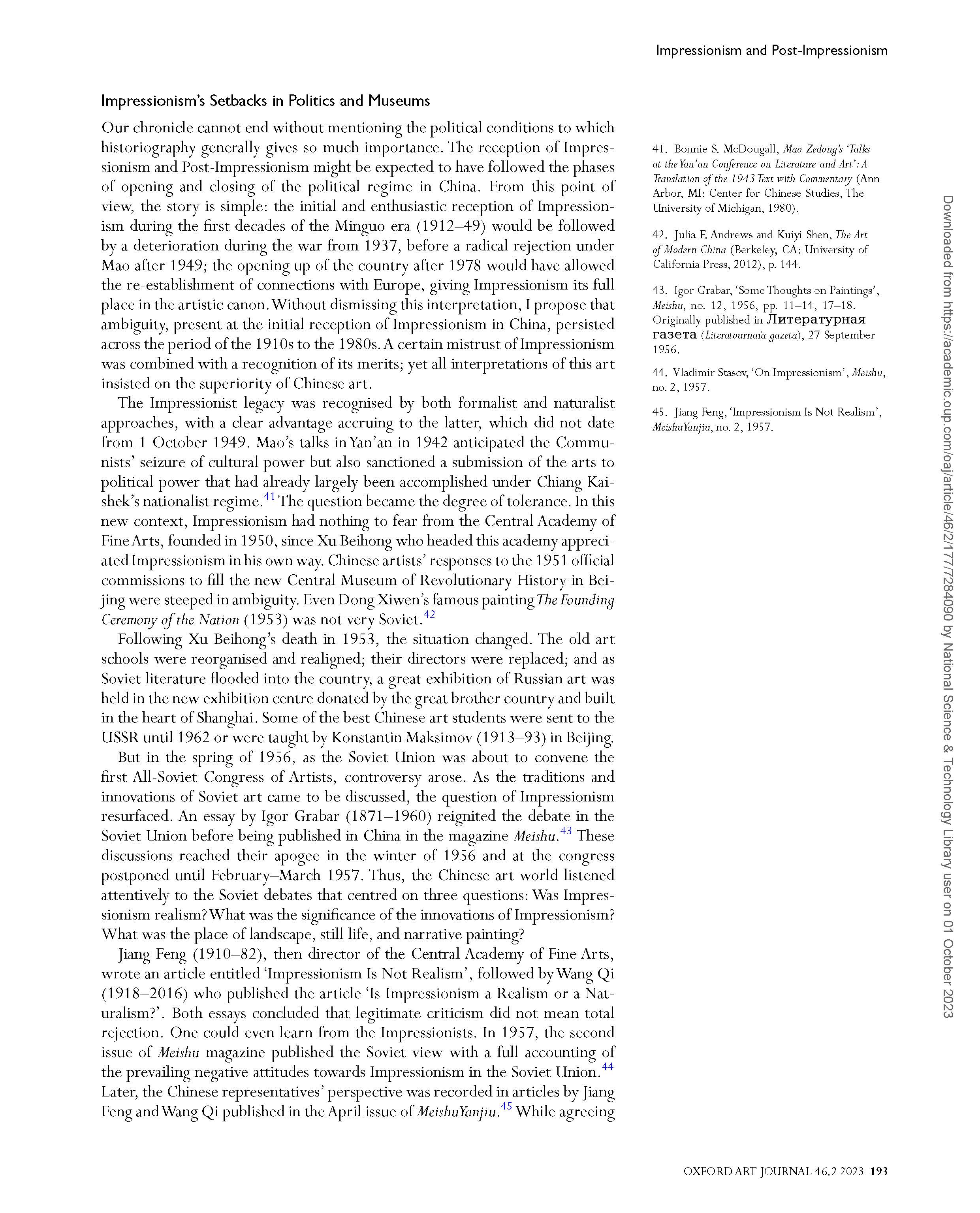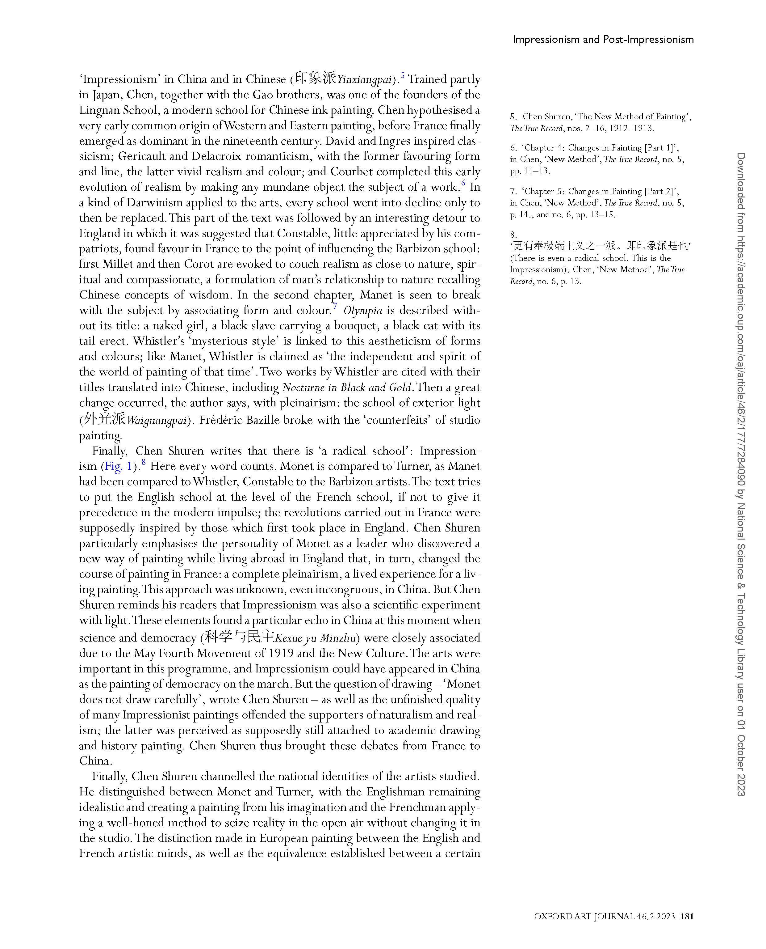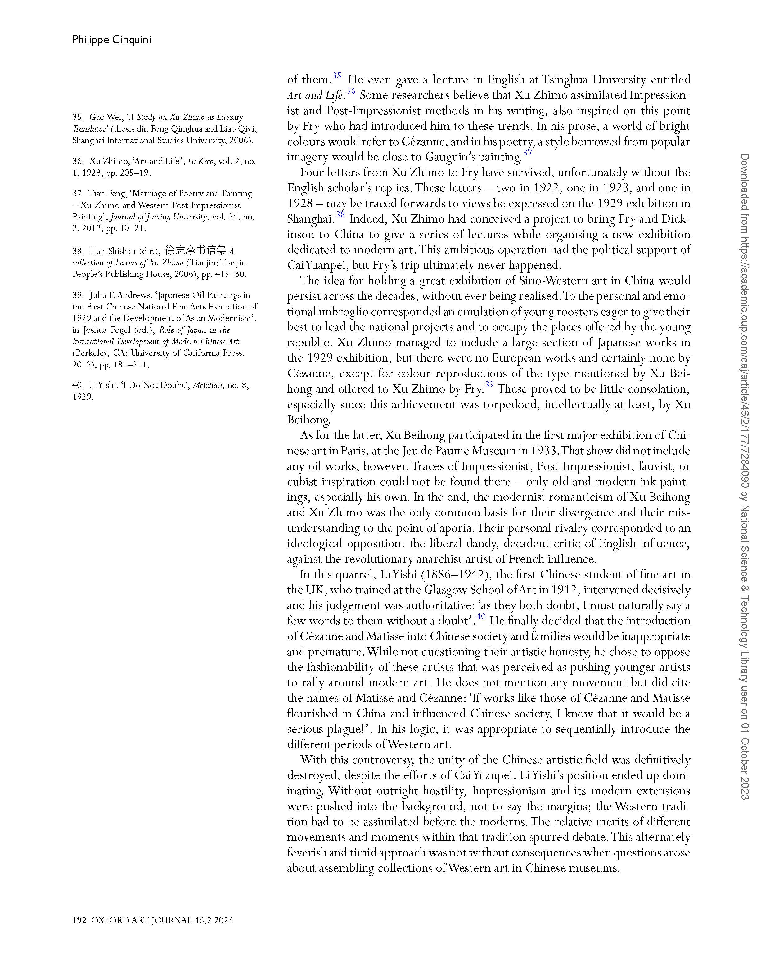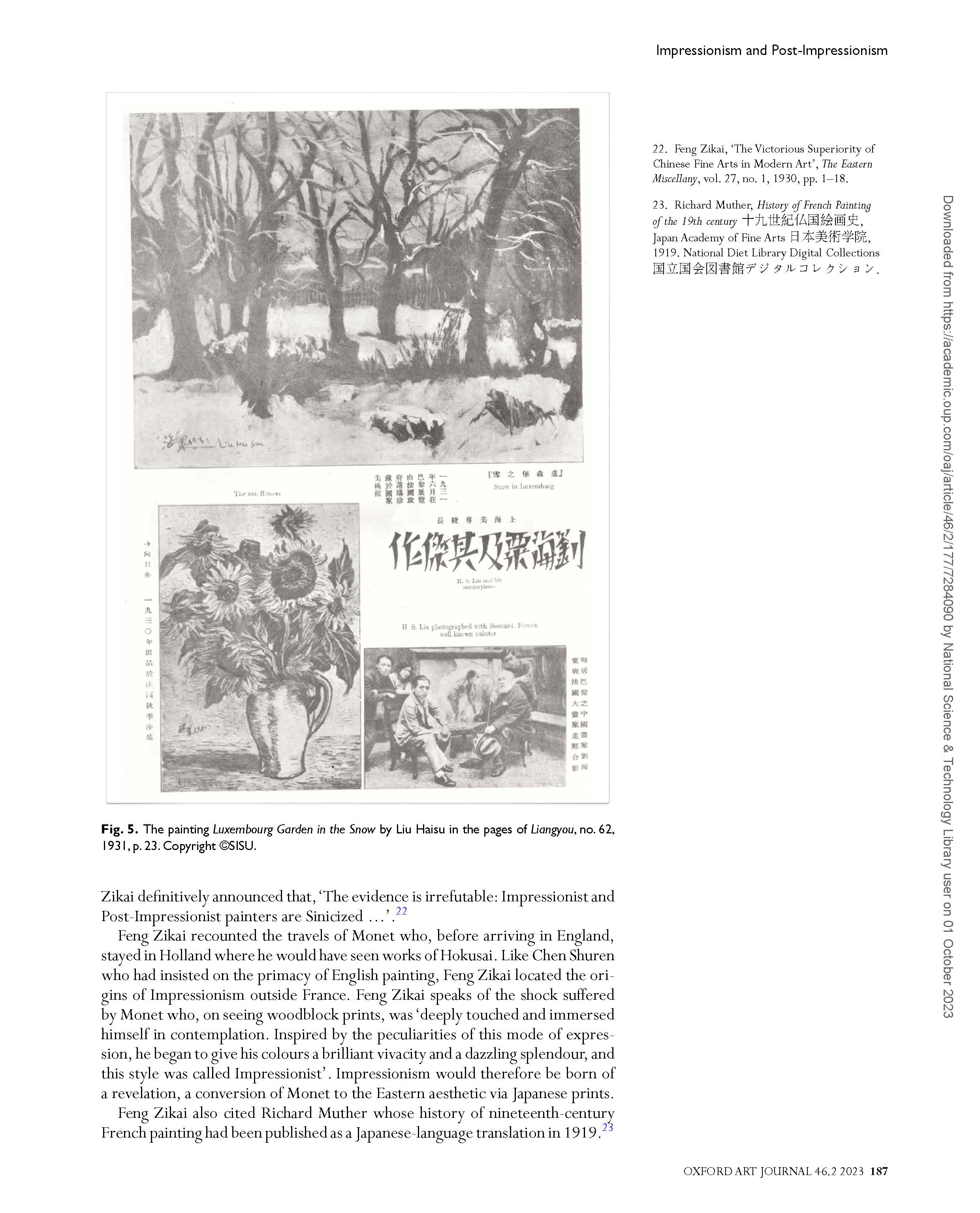 菲利普·杰奎琳(Philippe Cinquini),《印象派与后印象派在中国:争议和接纳(1910-1950 年)》,载于《牛津艺术杂志》(Oxford Art Journal),第46卷第2期,2023年8月,第177-197页。