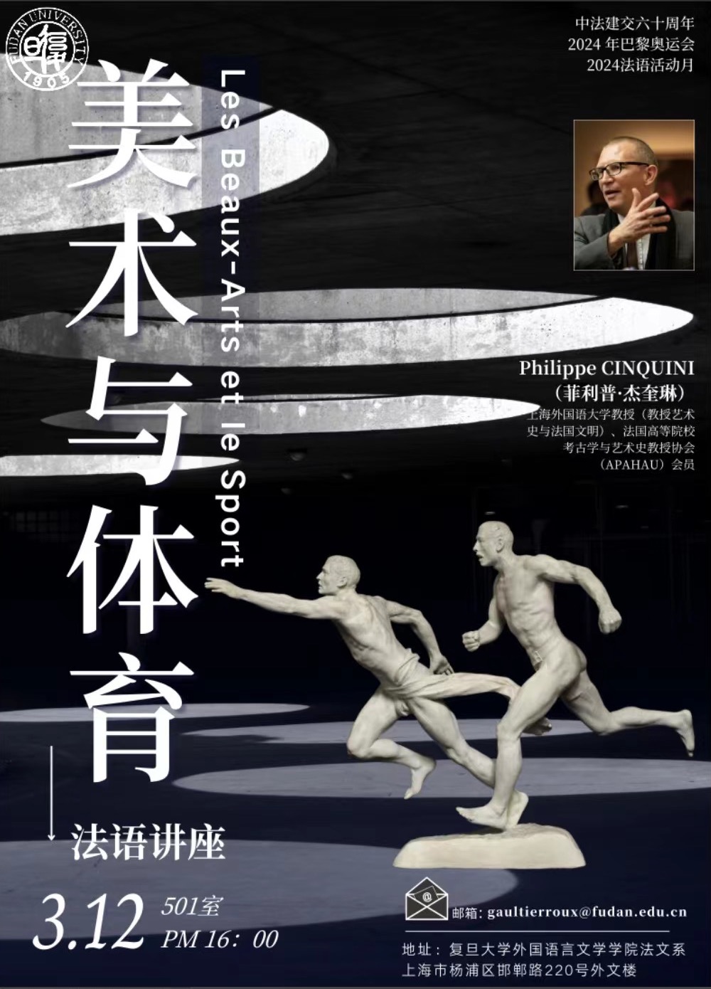 3月12日下午,受复旦大学邀请,上海外国语大学教授菲利普·杰奎琳先生在复旦大学外国语言文学学院举办了一场题为《美术与体育》(Les Beaux-Arts et le Sport)的精彩讲座。